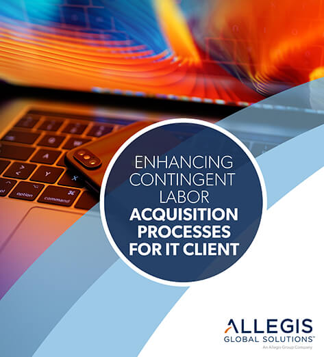 One of our IT clients was looking to improve and measure their processes for acquiring new contingent labor, specifically looking at time-to-fill and start submittal time. Upon doing a full-scale evaluation, Allegis Global Solutions (AGS) was able to identify multiple gaps within the intake and management process, including suppliers having access to new requests prior to any approvals taken place. Without the managed services (MSP) program office reviewing requests beforehand, it was not guaranteed that proper job templates were being used for positions, as well as other details, including cost elements, market grades, and locations.